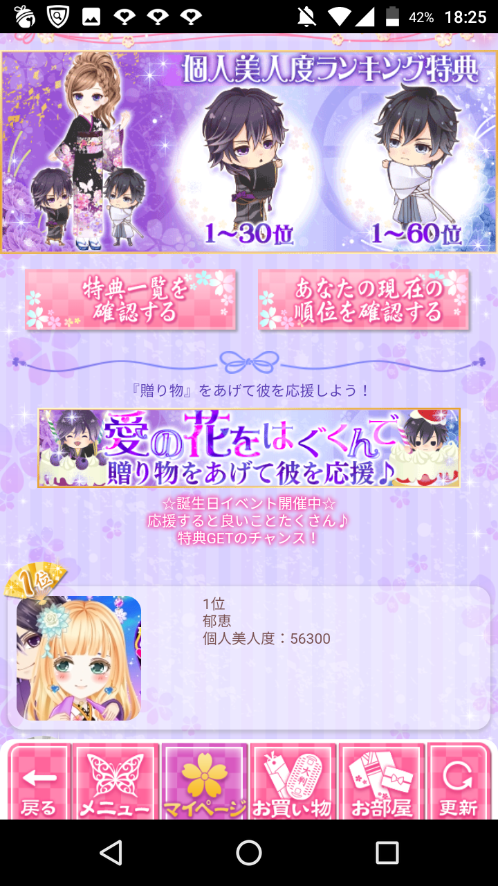 誕生日イベランキング恒例?の、豆だき着物が上位30位の姫たちへ贈られます。